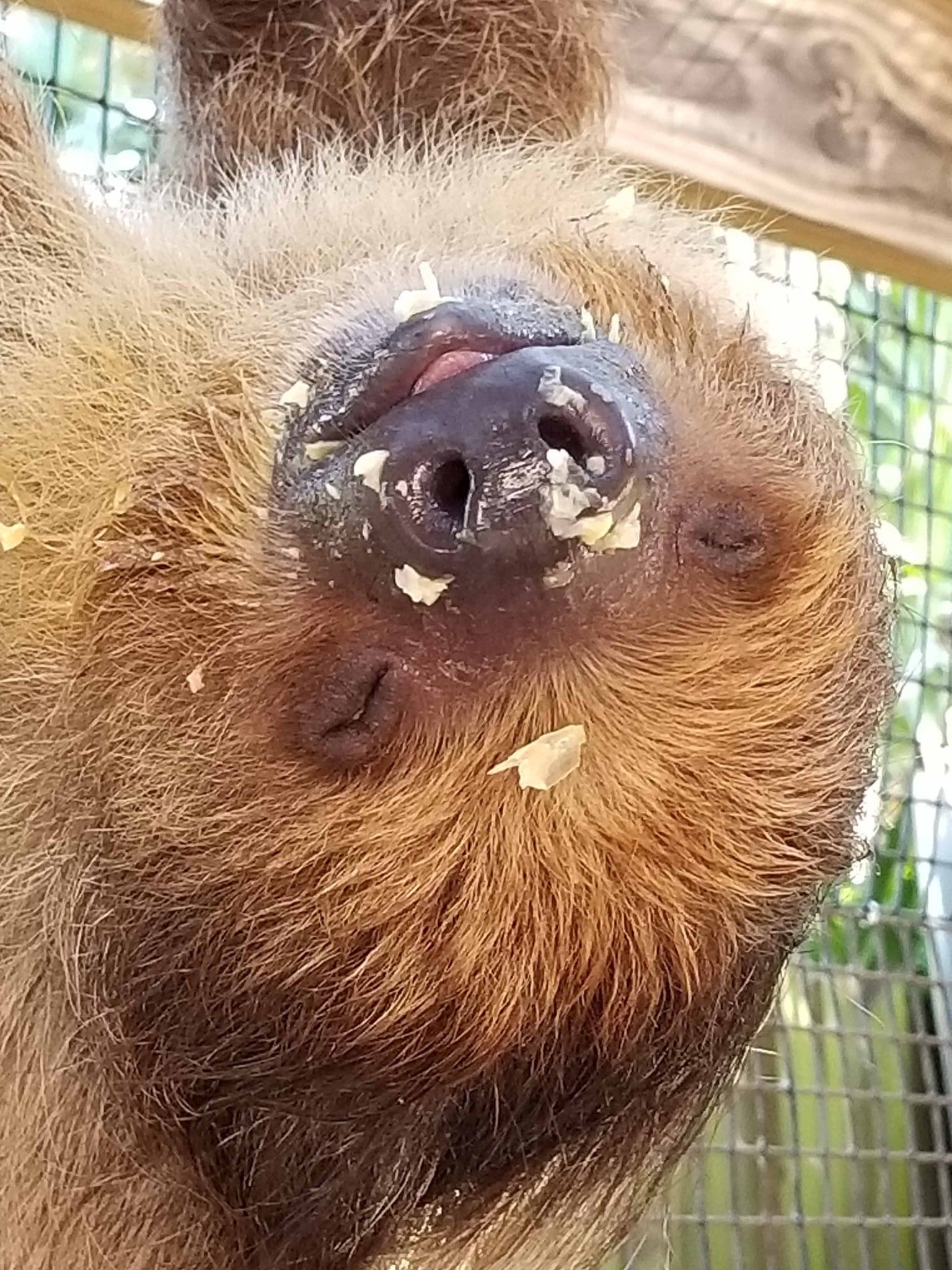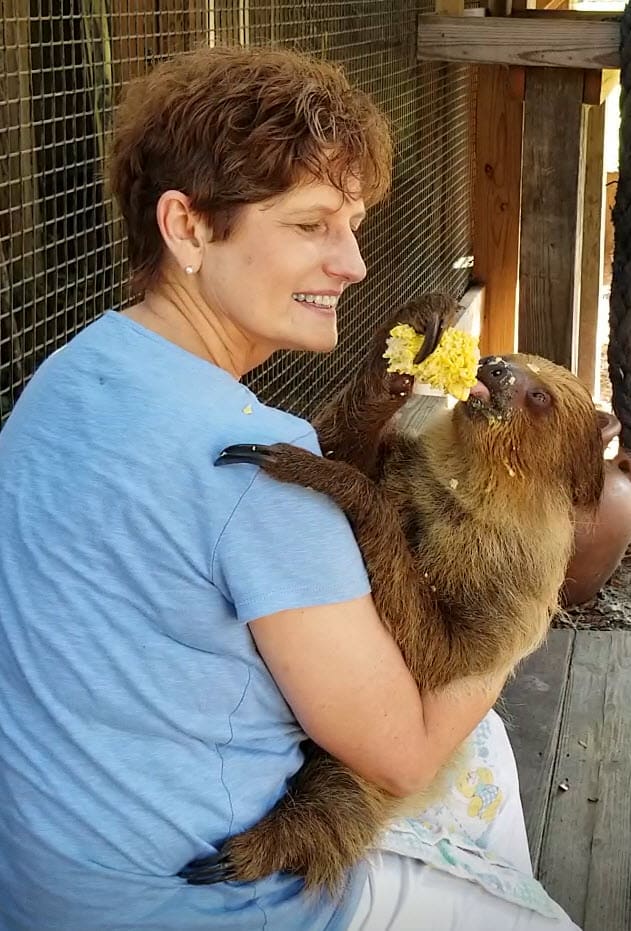 I searched for places where I could hug a sloth, and surprisingly, Wild Florida in Kissimmee, less than an hour from Orlando, provided that opportunity. Of course, I went and fed a sweet little female sloth named Aerie. I expected a sloth to be soft and squishy, but Arie wasn’t. I could feel her backbone and ribs through her skin.